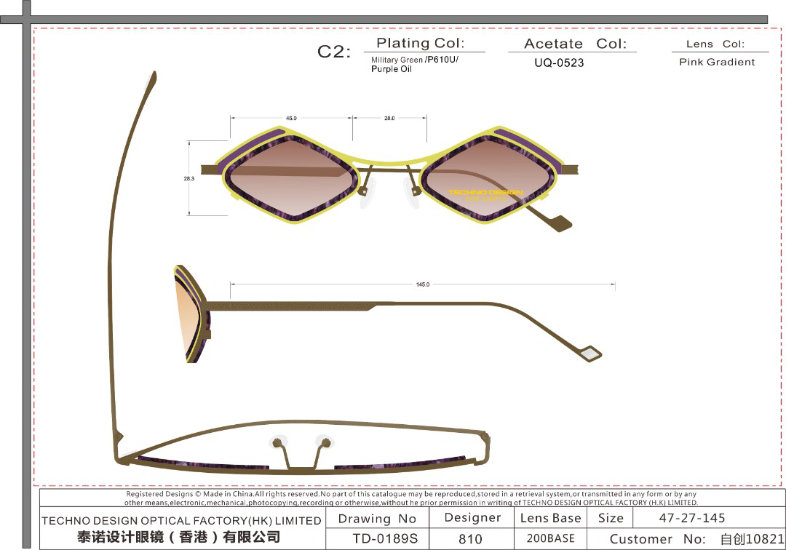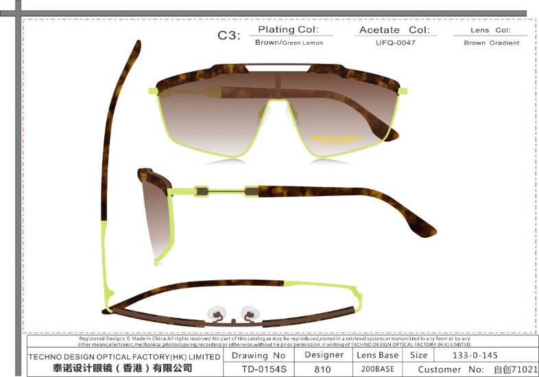 At Techno Design Optical Factory (H.K) Limited, we strive to provide the best services for ready goods by printing brand names and logos for those who want to place a lower order quantity of 100 pieces/model /25 pieces per colour.