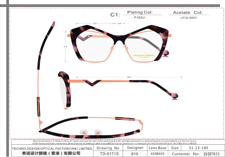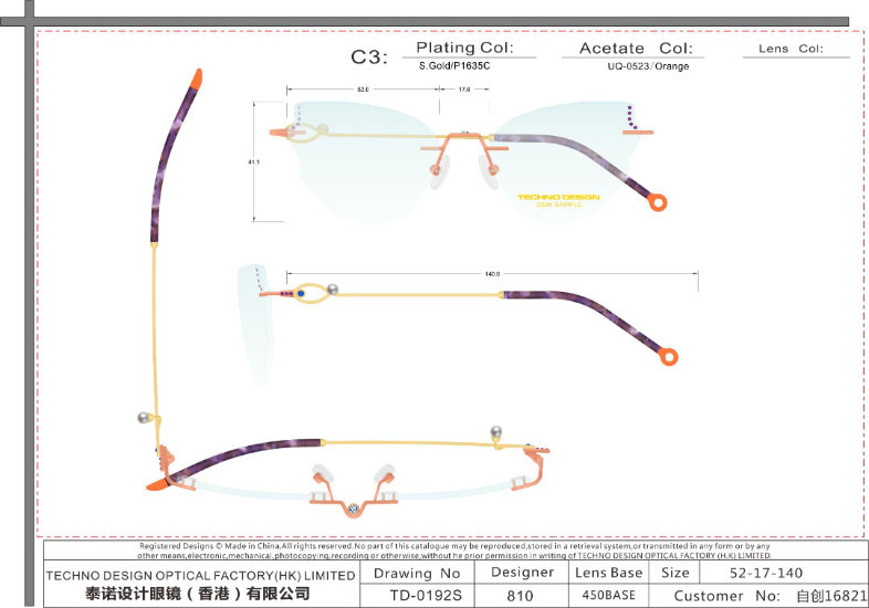 Read MoreThe expert’s designers working at Techno Design Optical Factory (H.K) Limited focuses on providing a blend between comfort, fashion, and function through our products. the design process includes, R&D hand drawings, colour drawings, production drawings, and prototypes, all of which go through a serious quality check at every stage.